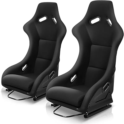 Auto Dynasty Pair of Racing Seats Universal Fabric Fiexed Position Style Bucket Seat With Adjustable Sliders, 22 W X 22 D X 32.5 H, Driver and Passenger Side, Black