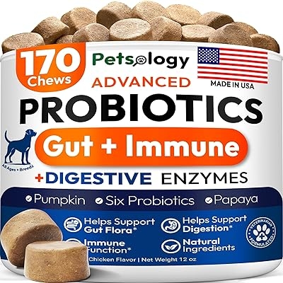 Probiotics for Dogs - 170 Dog Probiotics Chews - Digestive Enzymes & Prebiotics - Support Gut Health, Diarrhea, Gas & Constipation Relief - Itchy Skin, Allergies, Yeast Balance - Advanced Supplement
