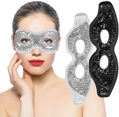 Ruzzut Cooling Gel Eye Mask with Holes, 2PCS Cold Eye Packs for Puffy Eyes & Swelling, Reusable Hot Cold Therapy Compress Heat Ice Gel Pack, Black and Gray