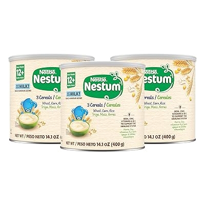 Nestle Nestum Junior Cereal, 3 Cereals - Wheat, Corn & Rice, Made for Toddlers 12 Months, 14.1 OZ Canister Pack of 3