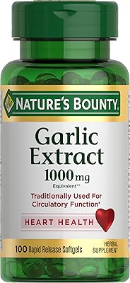 Nature’s Bounty Garlic Extract, Herbal Supplement, Supports Circulatory Function, 1000mg, 100 Rapid Release Softgels